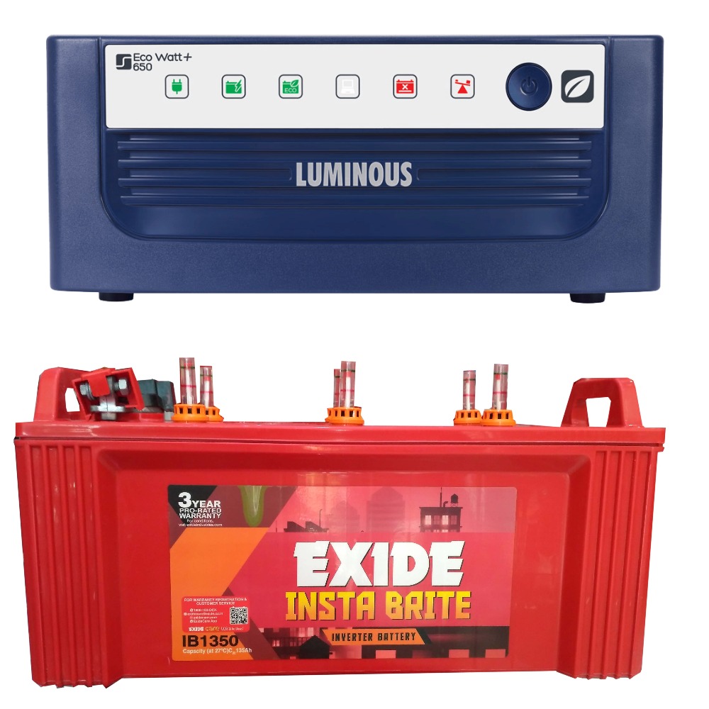 Product Code: Luminous ECO WATT+ 650 Square Wave Inverter & EXIDE INSTABRITE IB1350 135AH Flate Plate Battery 16% OFF